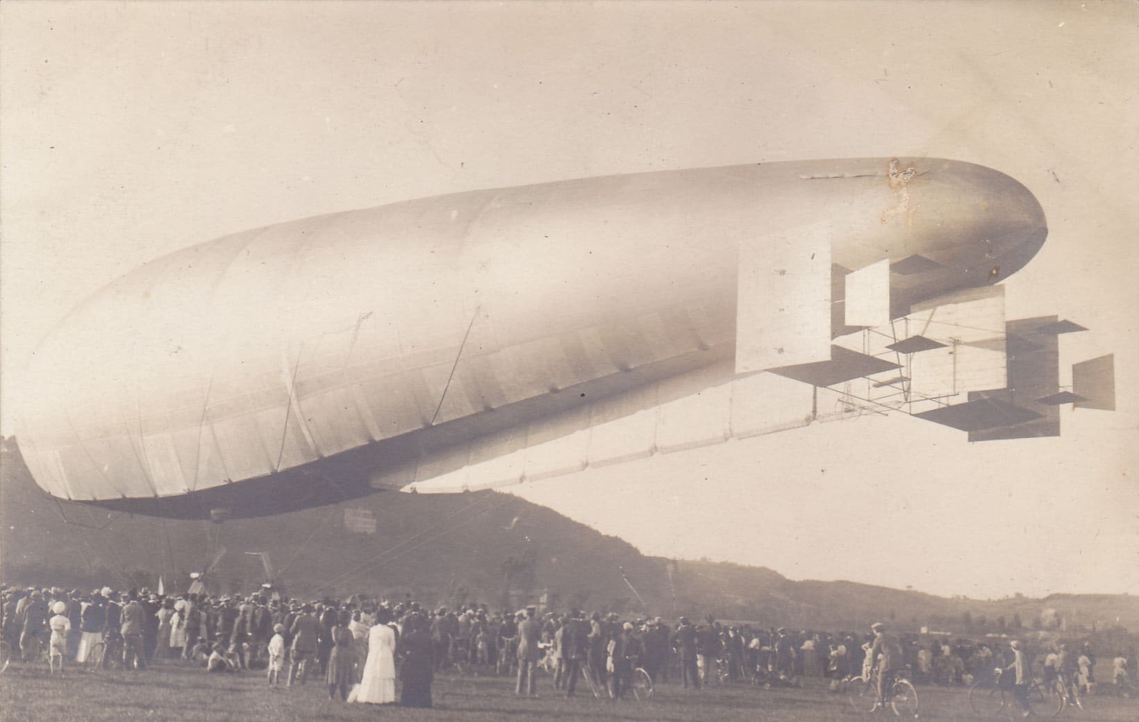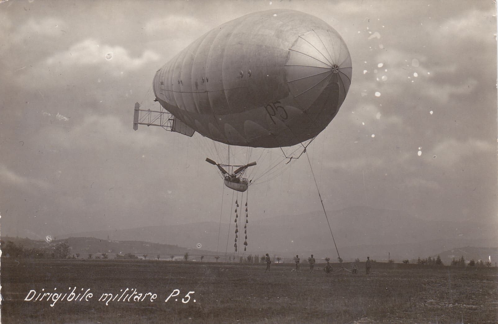 Oltre agli studi sul più leggero dell’aria, nei primi decenni del secolo, con l’affermazione dell’aeroplano, il “più pesante dell’aria”, Crocco fece degli studi innovativi già nel 1911 anche sulle eliche, realizzando l’”esploratore rotante”, un dispositivo studiato in una delle prime gallerie del vento, da lui stesso realizzata nel 1905 a Roma nella caserma Cavour e intuendo il principio dell’autorotazione, garanzia di sicurezza anche per i moderni elicotteri che in caso di avaria del motore possono planare come un autogiro. Un’altra invenzione di Crocco fu l’”idroscivolante” un prodromo dell’hovercraft, che egli sperimentò sul lago di Bracciano, anche seguendo le idee di un altro grande progettista dell’epoca, Enrico Forlanini. All’indomani di uno dei primi voli del dirigibile militare, sui giornali del 31 ottobre 1908 appariva la notizia: “Il trionfo del genio militare italiano. Il primo dirigibile italiano vola nel cielo di Roma. Da Bracciano al Quirinale in 32 minuti!”. L’impresa si svolse sotto gli occhi dei cittadini della capitale, come ricorda una delle cartoline che qui presentiamo. Il dirigibile si chiamava “Italia”, era lungo 60 metri, aveva un volume di 2500 mc e poteva portare in volo fino a 8 persone. A quell’epoca, Crocco e Ricaldoni, ideatori, costruttori e collaudatori dell’aeronave avevano il grado di Capitano.