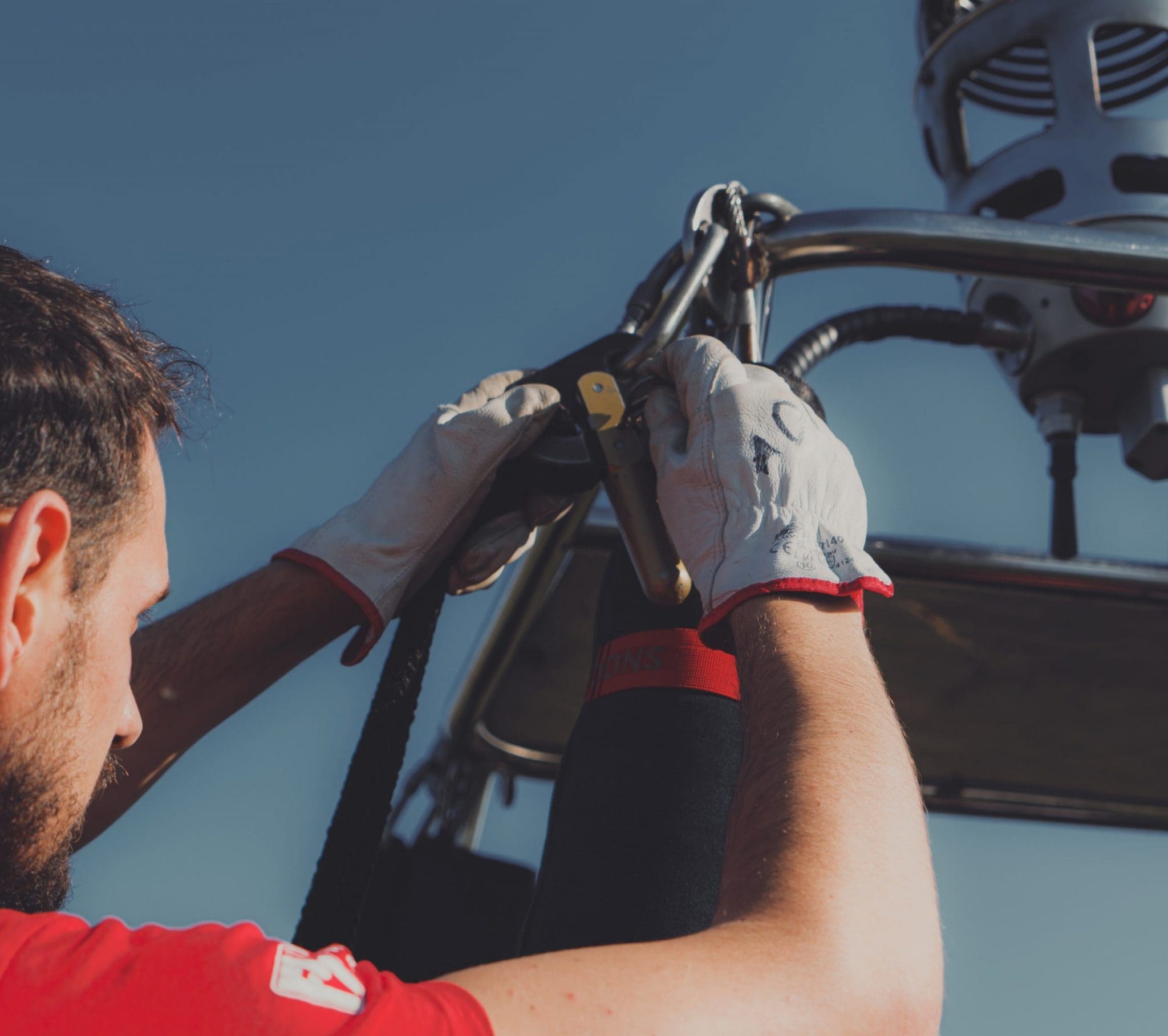 l’involucro (ovvero la parte in tessuto), il cestino (che nonostante siano passati centinaia di anni resta ancora di vimini), il bruciatore, le bombole di combustibile, gli strumenti di volo (radio, transponder, altimetro, variometro, sensori di temperatura, ecc…)