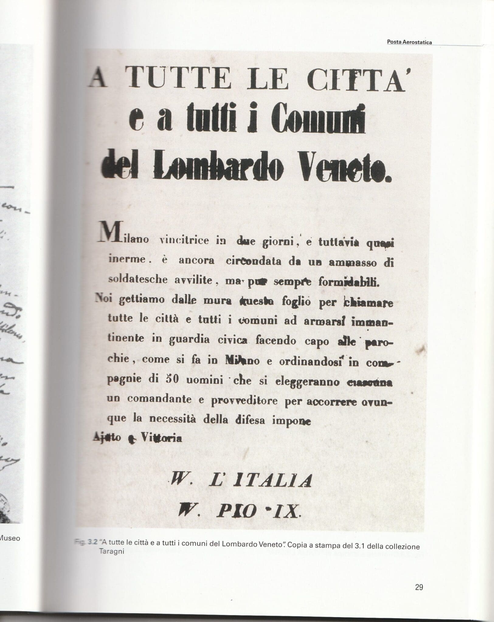 Many people wonder what was the first airmail transport in history. Here too, our hot air balloons reign supreme! In fact, if we exclude the single dispatch transported aboard the gas balloon that in the distant 1785 under the command of Jean Pierre Blanchard and Jonn Jeffries crossed the English Channel for the first time, we can consider the first massive transport of air communications at the time of the Five Days of Milan, in March 1848. We are in fact in the year of the great revolt that the Milanese made against the Austrian occupiers, commanded by General Radetzky. In fact, it was a matter of communicating outside the besieged city to invite the inhabitants of the surrounding villages to flock to Milan to support the revolt. The leaders of the insurrection Enrico Cernuschi and Carlo Cattaneo, con l’apporto fondamentale dell’illustre abate Antonio Stoppani, they realized the idea of launching small hot air balloons (i.e. hot air balloons) three or four meters high, carrying printed or hand-written dispatches (not stamped, even though the postage stamp had recently been invented in England) in a sort of basket hanging underneath. Since this was a riot, it is clear that it would not have been logical to apply taxation! Several dozen of these balloons were prepared by Stoppani and were launched from many places in the city, largely from the Corsia dei Servi (no longer existing today) and from the courtyard of the Seminario Maggiore, still existing today at the beginning of Corso Venezia, just before Via della Spiga. A plaque commemorates the event on top of the stone door of a nearby building, chipped by a cannon shot by the Austrians, who tried in vain to destroy the launch site. The small hot air balloons achieved their purpose and one even landed in the Cremona area. Of the original flyers and handwritten letters written at the time, some very rare examples remain today, sold at auctions at hyperbolic prices. They belonged to a Milanese collector whose heirs sold them en masse to the well-known Bolaffi company in Turin. As for the original hot air balloons, obviously without a pilot, there was only one example at the Sforza Castle Museum, but it was destroyed in 1943 during the heavy bombings of the Second World War. A black and white photo from the 1930s shows it, with the large writing “Viva Pio IX”, which was a way of invoking, in a Mazzinian way, the revolts against power that were taking place throughout the Peninsula in those years.