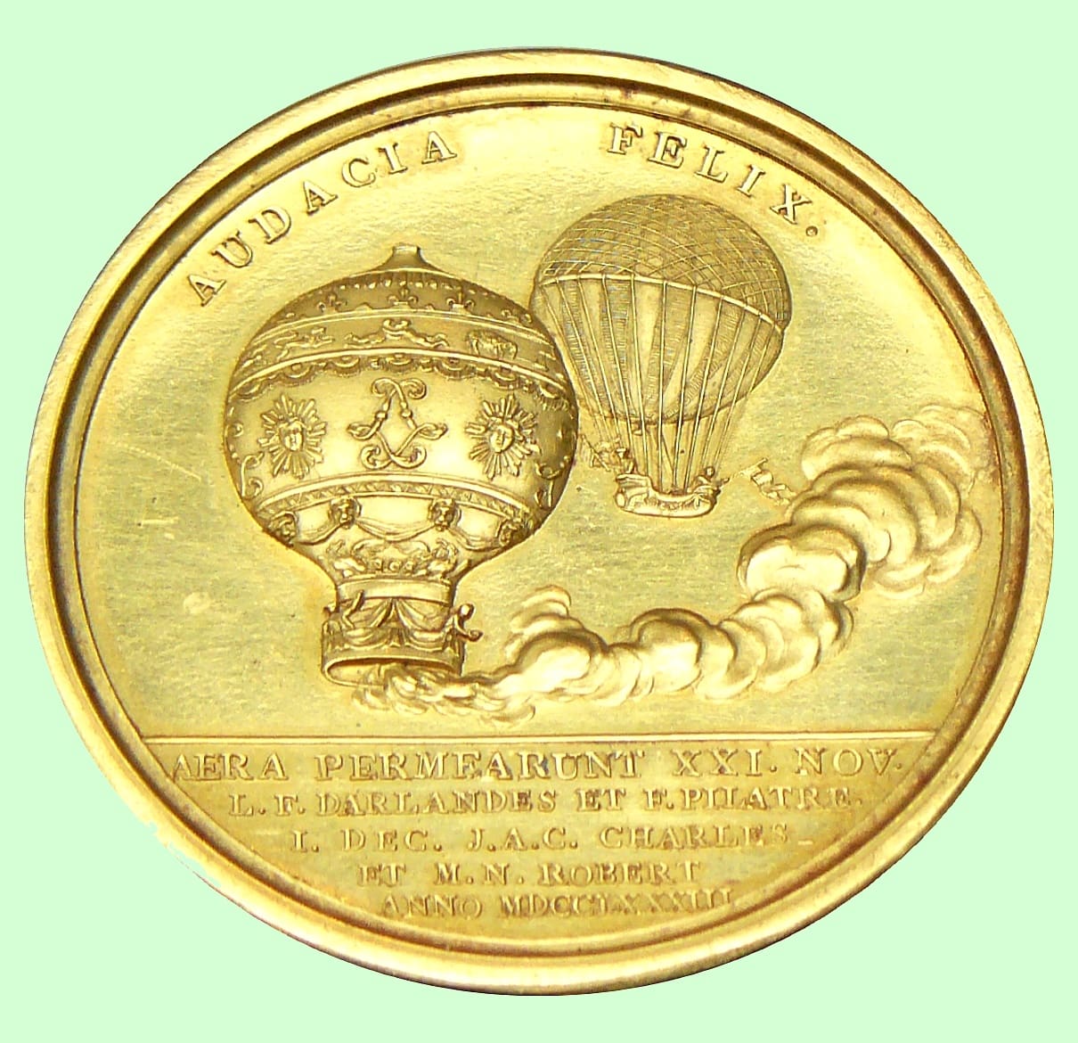 Molto più impegnativa e costosa è la collezione di vere e proprie medaglie commemorative, soprattutto quelle che furono dedicate ai grandi aeronauti del lontano passato. In Italia, ad esempio, già alla fine del Settecento furono coniate medaglie dedicate a Paolo Andreani e a Francesco Zambeccari, mentre le medaglie in onore di un altro grande aeronauta italiano del medesimo periodo storico, Vincenzo Lunardi, furono realizzate in Inghilterra.