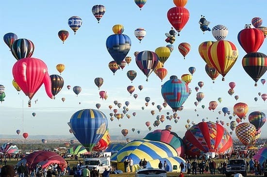 Nel nostro Paese siamo abituati ad esaltarci quando vediamo in volo una mongolfiera, a maggior ragione quando ne vediamo due o tre e impazziamo di gioia se ne vediamo una trentina, come accade ogni anno per l’Epifania a Mondovì. Negli Stati Uniti tutto è più grande, anche se “grande” non sempre vuol dire “bello”. Ci è capitato di visitare Albuquerque, la capitale mondiale del volo in pallone, ben cinque volte, alla fine degli anni Novanta. La prima volta fu di passaggio, in settembre, quando notai in volo dalla finestra del mio albergo una dozzina di palloni. Mi sembravano già tanti, essendo un giorno qualsiasi, ma non avevo fatto mente locale sul fatto che mi trovavo proprio nella capitale mondiale del volo aerostatico! E così, appena tornato