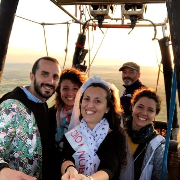 Quale modo migliore per salutare la vecchia vita da celibi/nubili se non spiccando il volo verso ignota destinazione? Il viaggio in mongolfiera è come il viaggio della vita: è il vento che ci conduce, si sa dove si parte ma non dove si arriva… e il viaggio sarà meraviglioso se sapremo guardare con occhi pieni di stupore il paesaggio attorno a noi.