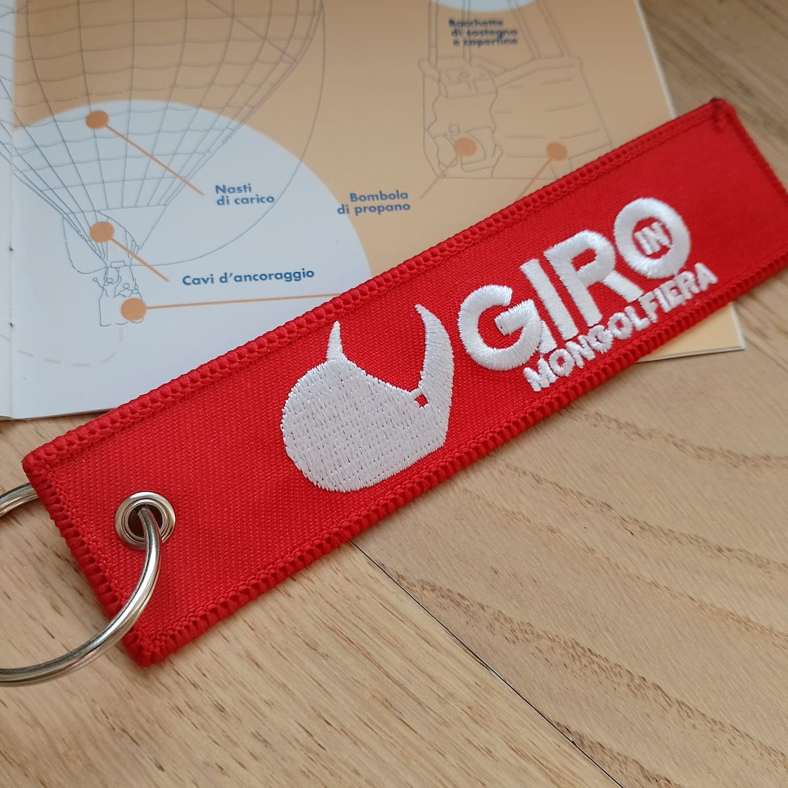 Portachiavi in tessuto ricamato con bordo in rilievo.