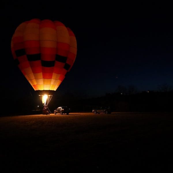 Prepareremo per voi il pallone al buio in modo da poter decollare al crepuscolo, quando i contorni non sono ben definiti e non si distingue la differenza tra terra e cielo… per poi ammirare il sole sorgere all’orizzonte, e giocare a rincorrerlo nella sua ascesa nella volta celeste. Atterreremo quindi in completa sicurezza, finalmente ben consapevoli che quello che abbiamo appena vissuto è stata una meraviglia davvero reale, e non frutto del nostro inconscio!